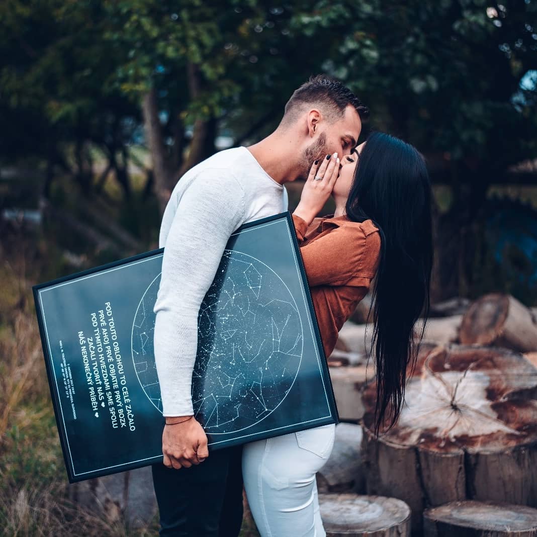 Ako jediní v republike ponúkame možnosť vytvorenia unikátnej hviezdnej mapy, generovanej podľa dňa, miesta a času aj s textovou spomienkou pomocou online konfigurátora.